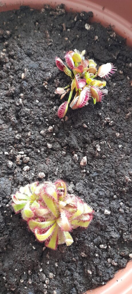 La taille du pot doit être d’1L (Ø ~ 12cm) minimum. Si vous avez de l’espace, n’ayez pas peur du ridicule ; plus votre pot plastique sera volumineux, plus votre Drosera aura d’espace pour se développer convenablement. Taille de pot recommandé : 3L. Vous pourrez alors y ajouter quelques plantes compagnes : Drosera et Sarracenia.