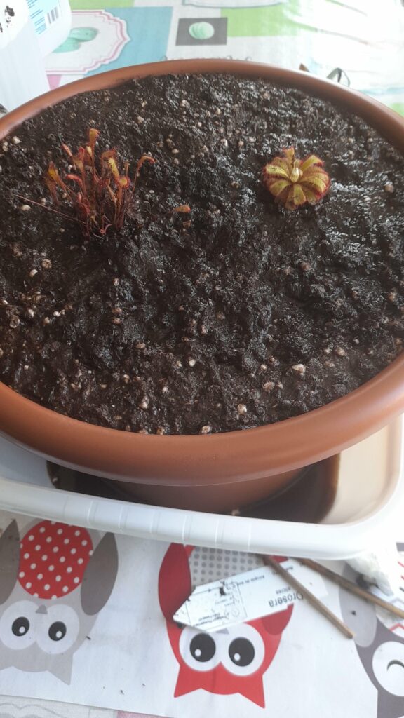 La taille du pot doit être d’1L (Ø ~ 12cm) minimum. Si vous avez de l’espace, n’ayez pas peur du ridicule ; plus votre pot plastique sera volumineux, plus votre Drosera aura d’espace pour se développer convenablement. Taille de pot recommandé : 3L. - Niveau : Plante très facile à cultiver et à multiplier