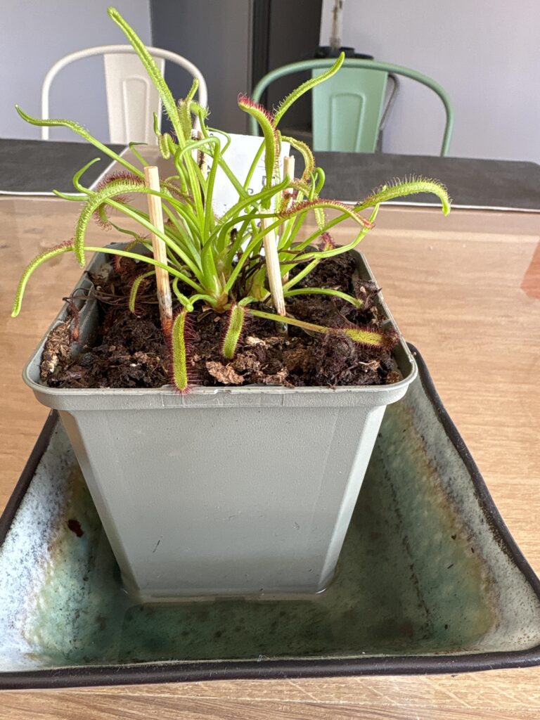 Première plante carnivore. Contente de mon achat. Elle a l’air de bien prendre (j’ai suivi les conseils pour rempotage). A voir par la suite.