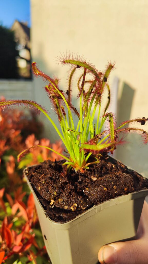 - Luminosité et emplacement : Les Drosera capensis ont besoin de plein soleil pour se développer convenablement. Il faudra donc absolument placer la plante en extérieur.