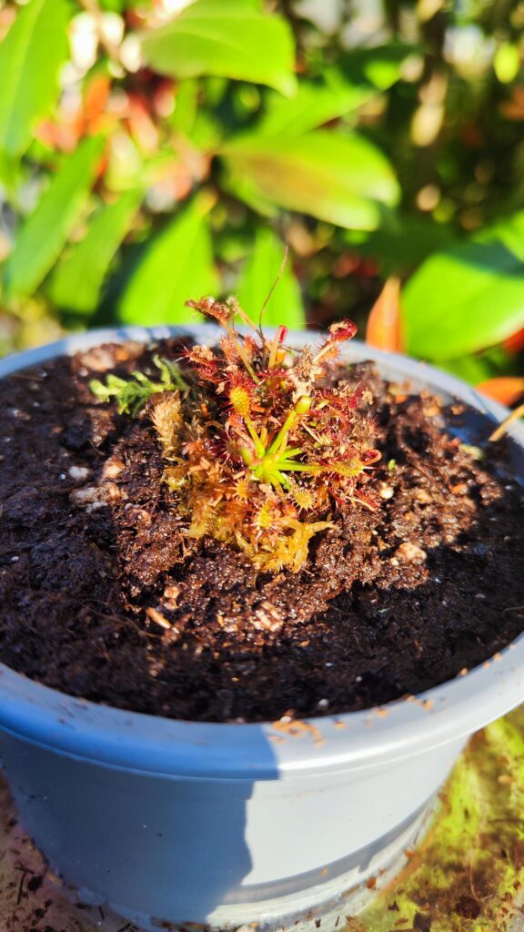 - Luminosité et emplacement : Les Drosera intermedia ont besoin de plein soleil pour se développer convenablement. Il faudra donc absolument placer la plante en extérieur.