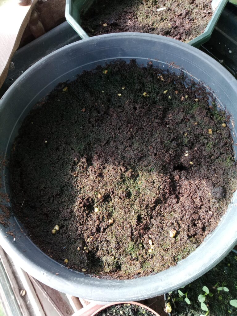 2. Semer les graines directement à la surface du substrat sans les enfoncer et en évitant de faire tomber des paquets de graines au même endroit.