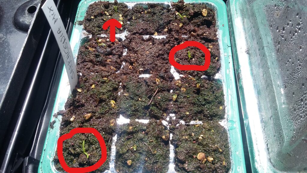 Bonjour, ça commence à pousser. J’ai des bébés Sarra mix surprise. J’ai essayé en extérieur pour le moment cela ne donne rien du tout, par contre en mini serre et dans ma véranda cela pousse. La preuve en image !