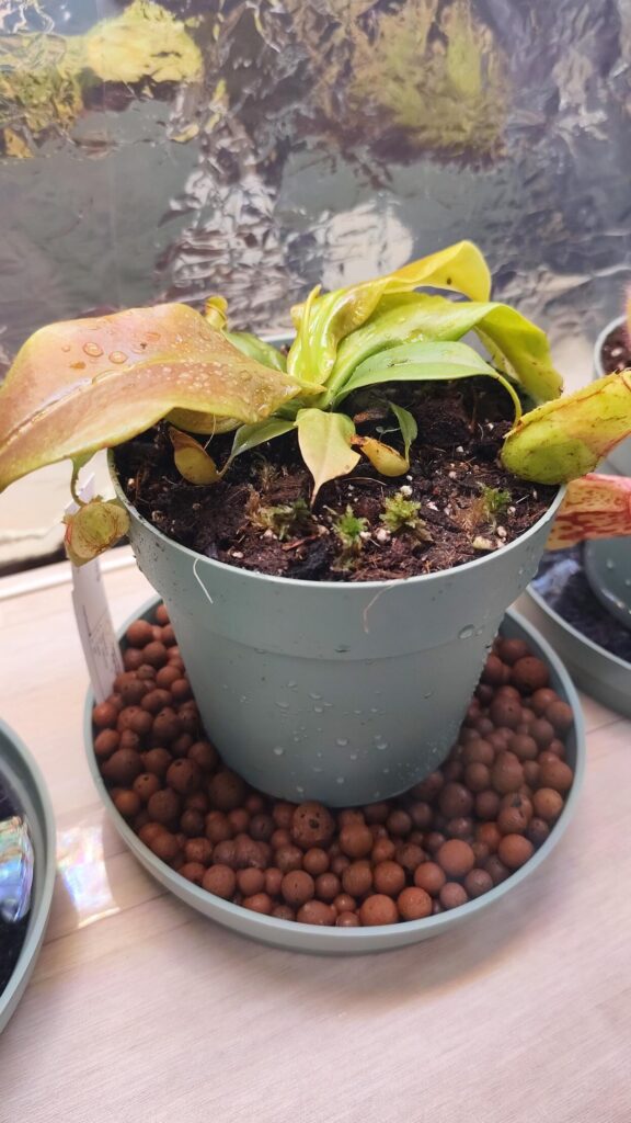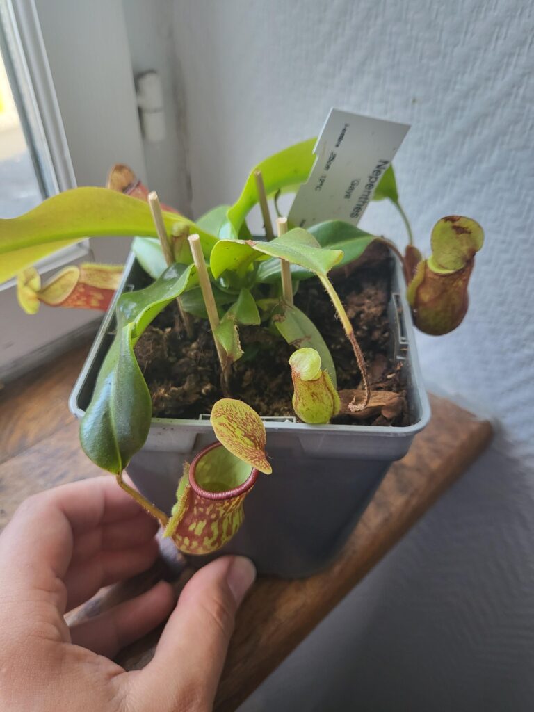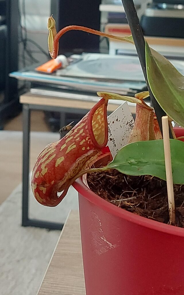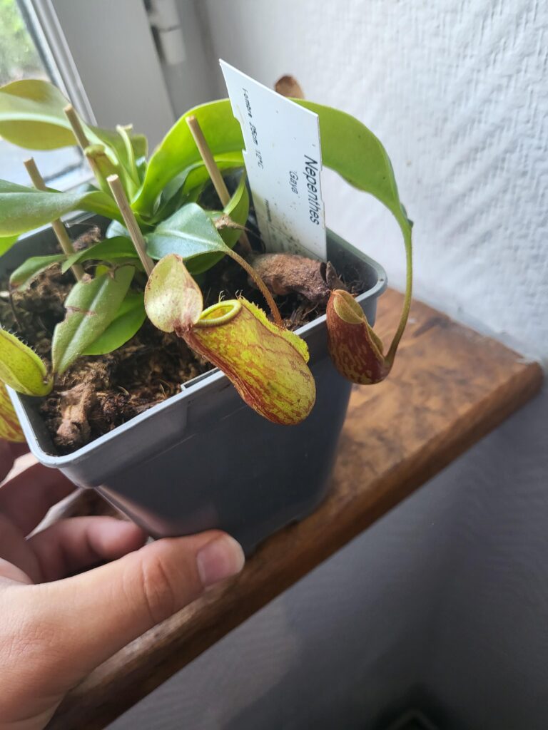 Je découvre la Nepenthes Gaya. Arrivée avec de nouvelles pousses et s’épanouit de jour en jour. J’ai bien suivi les conseils d’Enzo sur l’entretien.