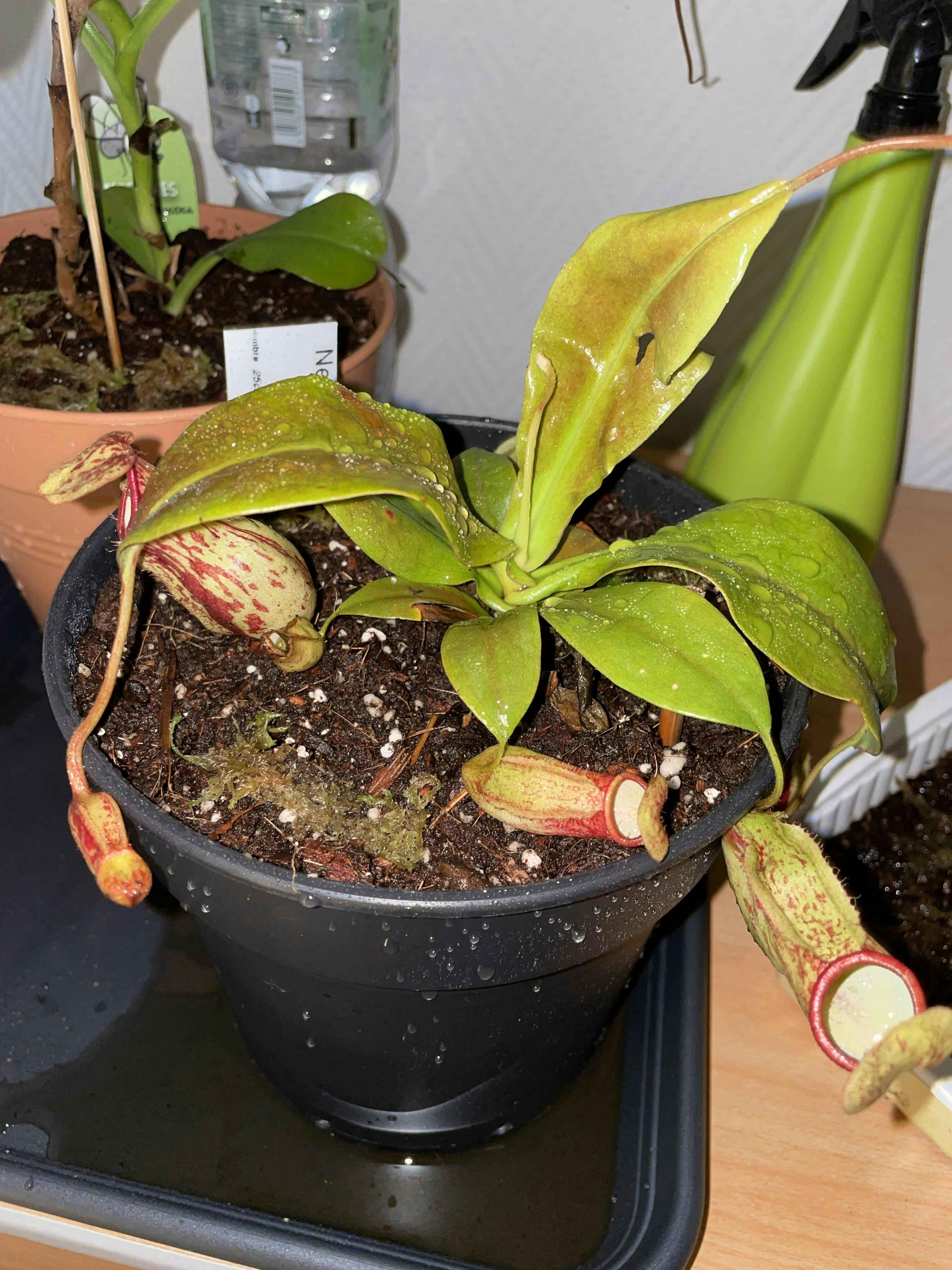 Je découvre la Nepenthes Gaya. Arrivée avec de nouvelles pousses et s’épanouit de jour en jour. J’ai bien suivi les conseils d’Enzo sur l’entretien.
