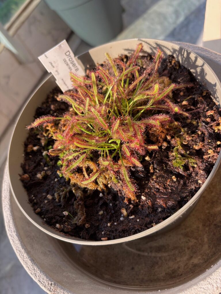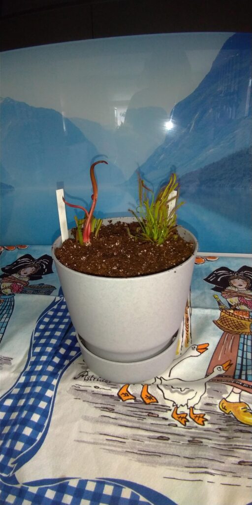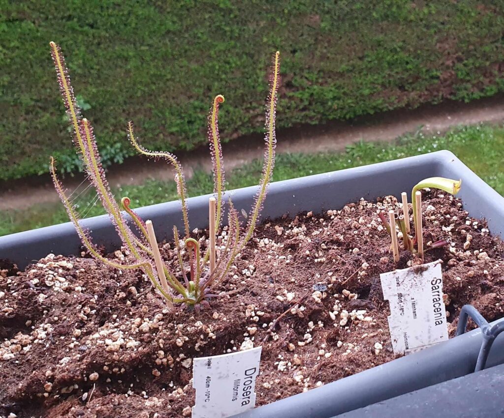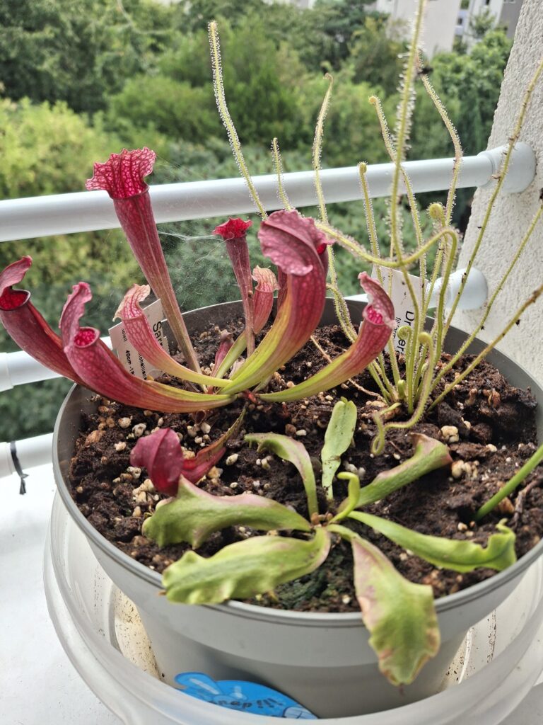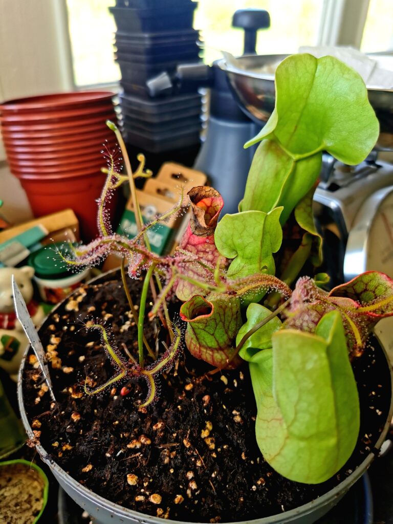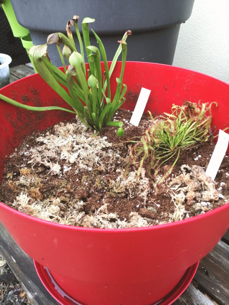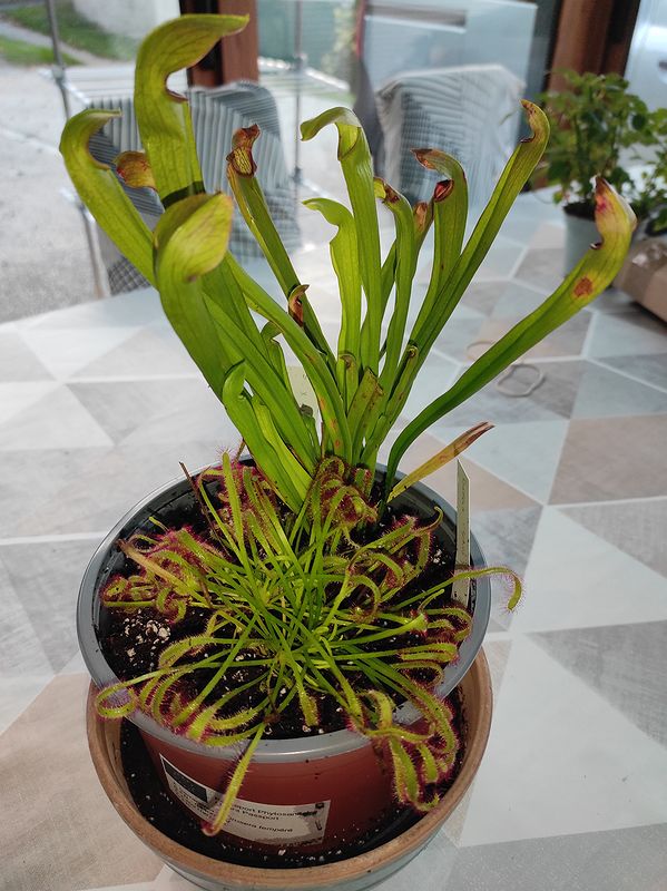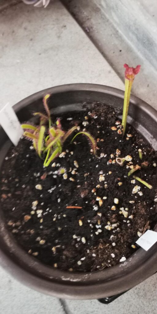 La drosera est en pleine forme. La saracenia est en train de poussée. Par contre je les ai séparées, je trouvais qu’elles auraient été trop serrées dans le même pot