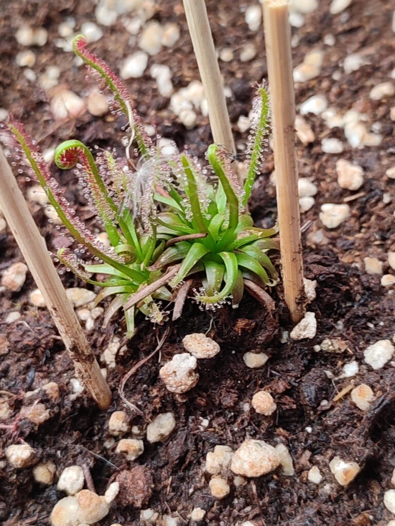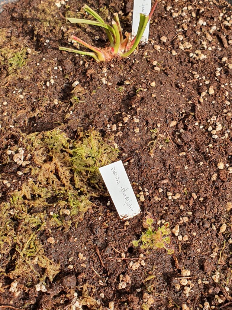 - 1 Drosera tempéré (en fonction des stocks disponibles : Drosera capensis, Drosera capensis ‘alba’, Drosera filiformis, Drosera binata ou Drosera intermedia)