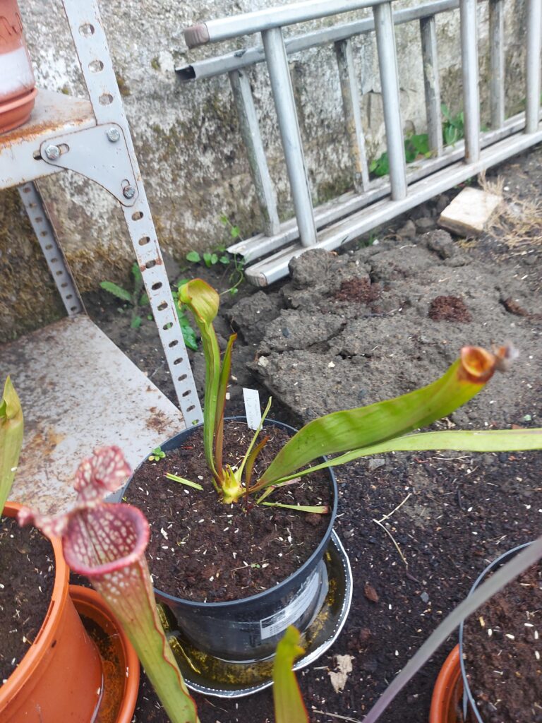 La taille du pot doit être d’1L (Ø ~ 12cm) minimum. Si vous avez de l’espace, n’ayez pas peur du ridicule ; plus votre pot plastique sera volumineux, plus votre Sarracenia aura d’espace pour se développer convenablement. Taille de pot recommandé : 3L. Vous pourrez alors y ajouter quelques plantes compagnes : Dionaea muscipula et Drosera tempérées.