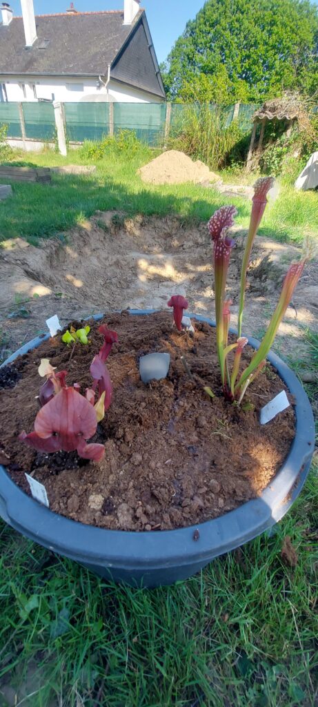 La taille du pot doit être d’1L (Ø ~ 12cm) minimum. Si vous avez de l’espace, n’ayez pas peur du ridicule ; plus votre pot plastique sera volumineux, plus votre Sarracenia aura d’espace pour se développer convenablement. Taille de pot recommandé : 3L. Vous pourrez alors y ajouter quelques plantes compagnes : Dionaea muscipula et Drosera tempérées.